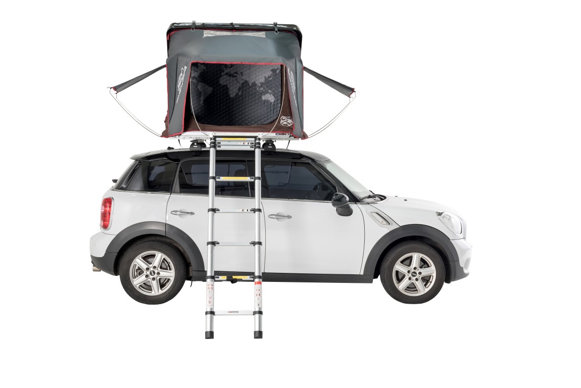 Das Skycamp Mini 2.0 ist innerhalb von 60 Sekunden aufgebaut und besteht aus einem extrem stabilen Boden aus Aluminium-Wabenplatten. Zudem fördert der Zeltstoff aus einem hochwertigen und atmungsaktiven Baumwollmischgewebe, der auch Segeltuch oder Canvas genannt wird, den natürlichen Feuchtigkeitsausgleich. Ein Tropendach hält die Sonnenstrahlung ab und sorgt mit der Luftschicht zwischen Dach und Zelt für Schatten und somit für ein angenehmes Raumklima. Die Glasfaserhartschale verringert den Luftwiderstand beim Fahren und ist dank der 30 Jahren Erfahrung der Herstellern, besonders stark und langlebig.